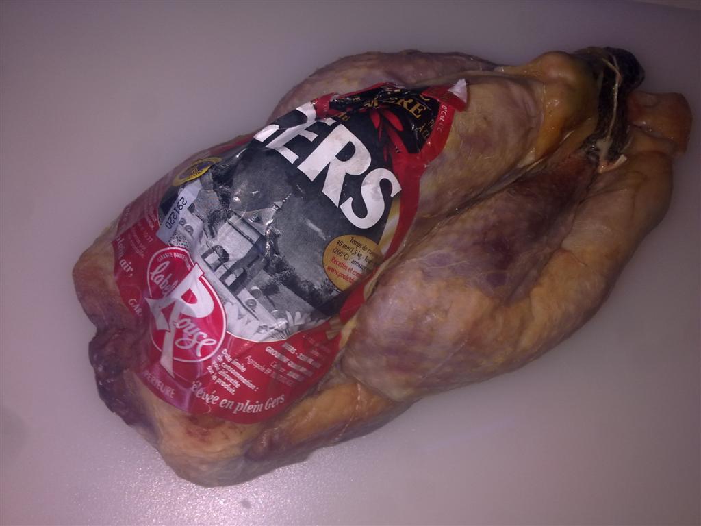 Tenía ya ganas de probar la pintada o «gallina de Guinea», después de todo lo que nos había contado de ella Christophe. En el mercado de La Paz donde suelo comprar sólo las venden frescas en navidad, el resto del año las tienen congeladas. Cuando Elena de Cocina Clandestina nos habló de La Boucherie de Luis, una estupenda carnicería cerca de mi trabajo, me fui a visitarla y, tras un buen rato de departir con Javier, el amabilísimo carnicero, me llevé esta estupenda pintada francesa label rouge.