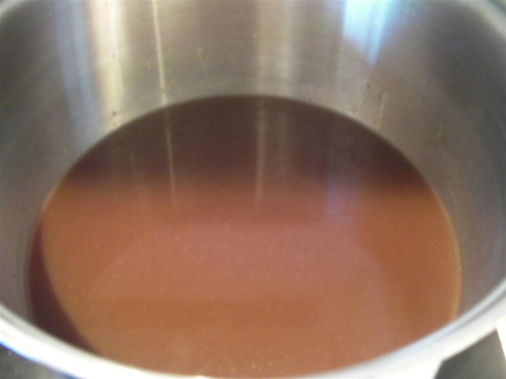 Entre 60 y 63ºC el conjunto de claras y carne picada coagulan y forman una malla que sube a lo alto de la olla y que sigue filtrando las partículas y los glóbulos de grasa que llegan a ella ayudadas por las corrientes de convección. Al espumar esta malla al final del clarificado eliminamos todas las partículas, resultando un líquido limpio y claro.