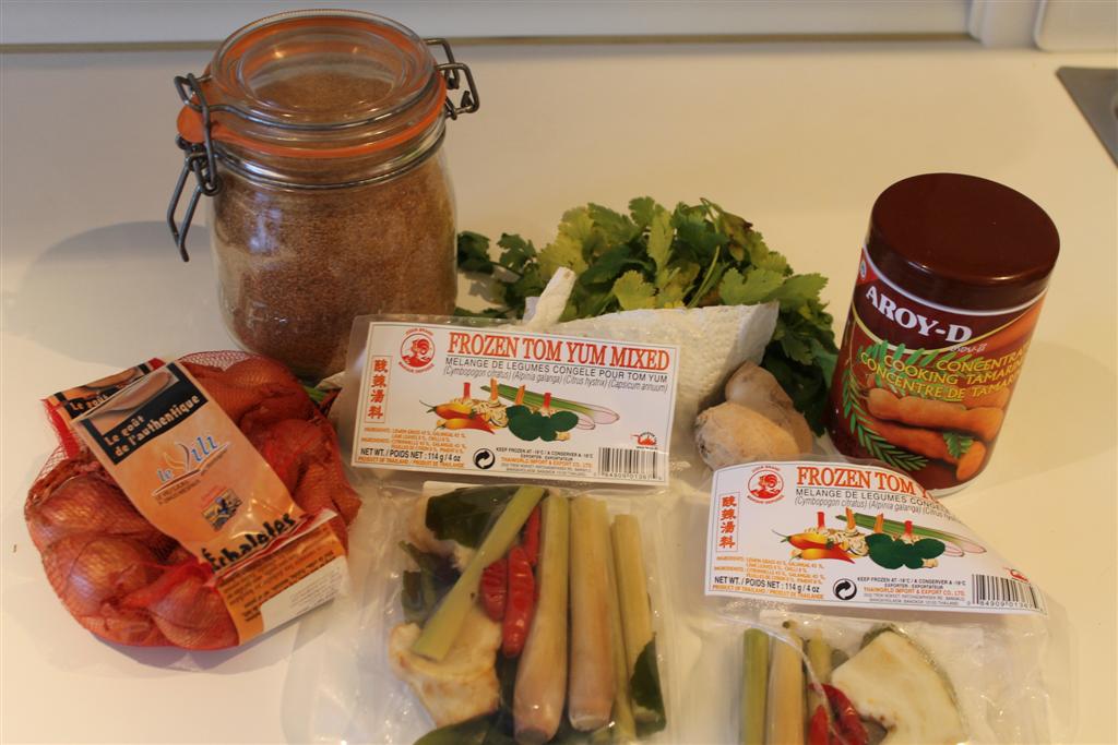- Un paquete de ingredientes para Tom Yum congelados, que contiene aproximadamente: