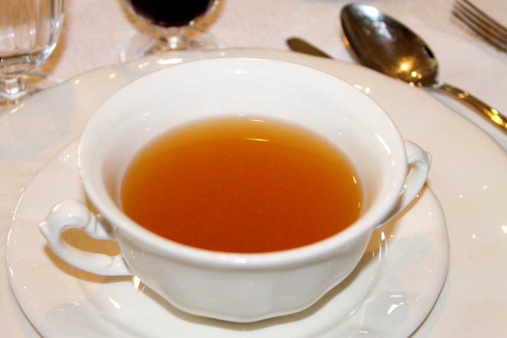 Si nos hemos asegurado de que la olla rápida no entre en sobrepresión, ambas cocciones han sido suaves, sin ebullición, y con un filtrado adecuado por una malla muy fina el caldo estará bastante limpio. Si aún así queremos ejecutar el consomé canónico, podemos clarificarlo usando la técnica tradicional, congelación-descongelación (no necesita gelatina extra puesto que ya tiene toda la extraida de los huesos), o agar.