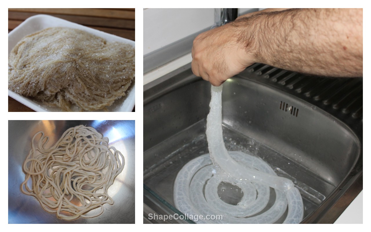 Las tripas naturales vienen empaquetadas en sal o en salmuera, por lo que necesitamos eliminar la sal e hidratarlas.