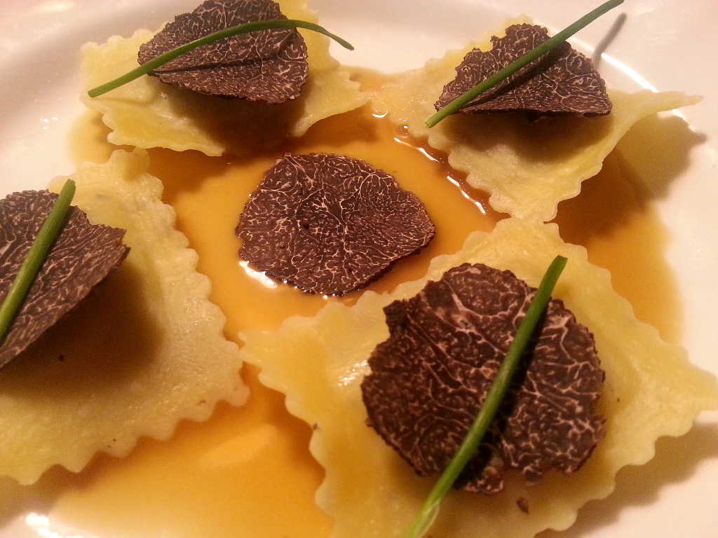 Huevos de pollita a 63ºC en su cáscara y trufa negra