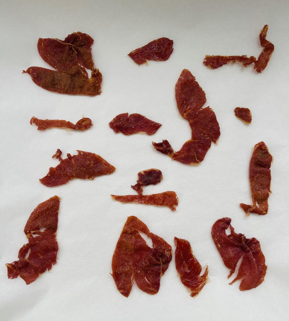 Las deshidratamos usando varios ciclos de microondas primero a potencia máxima y luego bajándola. Yo, en el mío, he usado 2 ciclos de 2 min a 1000 W, he cambiado las hojas de horno que estabas húmedas, y otros 2 ciclos de 2 min a 800W.