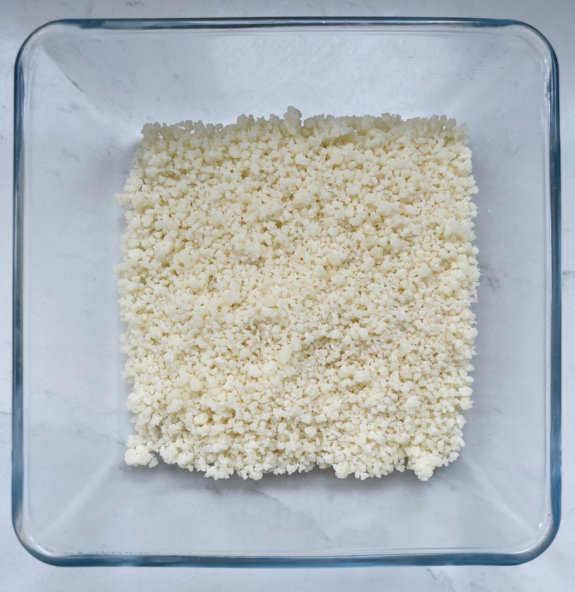 Vertemos en un tupper para que nos quede una capa de alrededor de medio cm de alto, enfriamos, y refrigeramos.